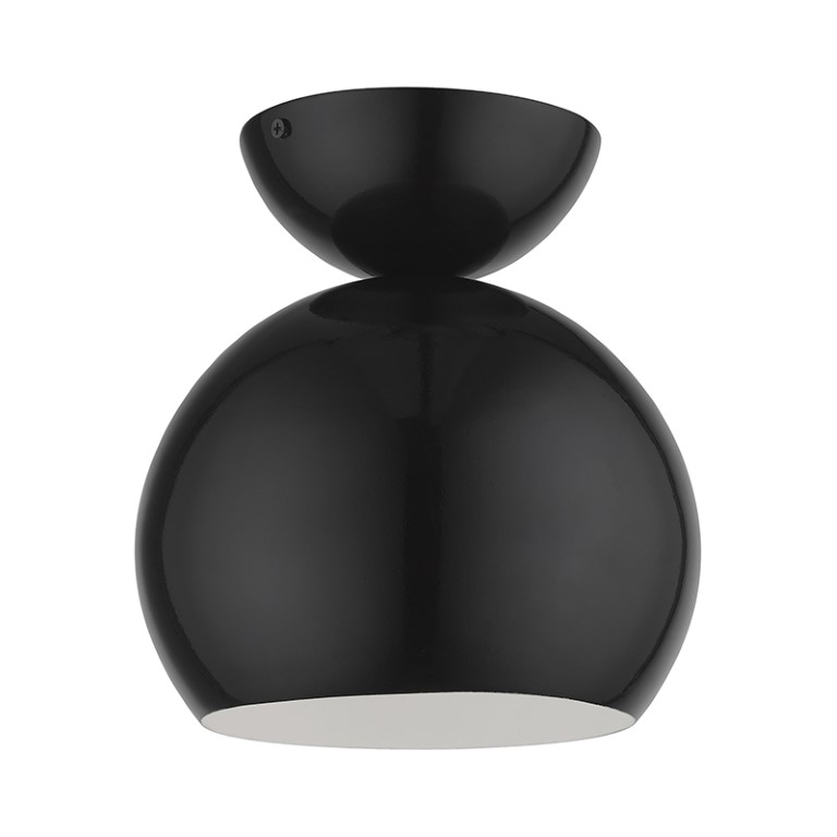 Featuring a clean and crisp modern look, the Stockton one light globe semi flush makes a contemporary statement with the smooth globe shape of its shiny black finish exterior. A gleaming shiny white finish on the interior of the metal shade and polished chrome finish accents bring a refined touch of style.