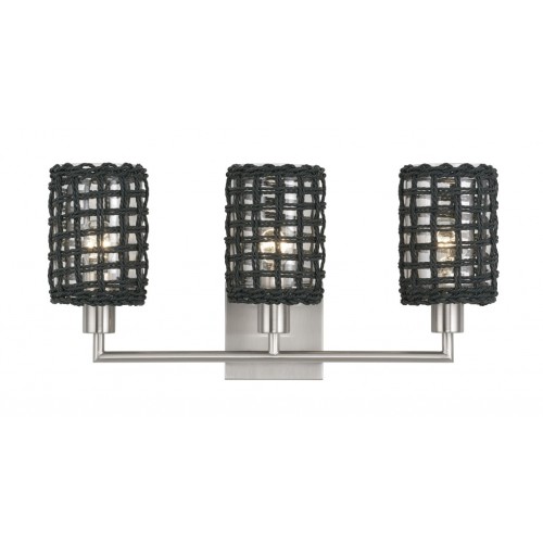 Hand-woven Midnight Black Color Paper Rope Shade On Top of Clear Glass Shade, 4.375" Dia x 7" H