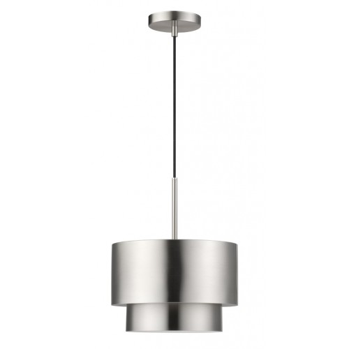 Brushed Nickel Steel Shade with Shiny White Inside, Outside Steel Shade - 12" Dia x 5.8" H / Inside Steel Shade - 9" Dia x 3.25" H