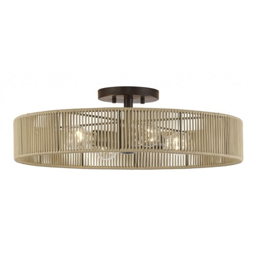 Hand-woven Venetian Gold Color Polyester Rope Shade, 22" Dia x 4" H