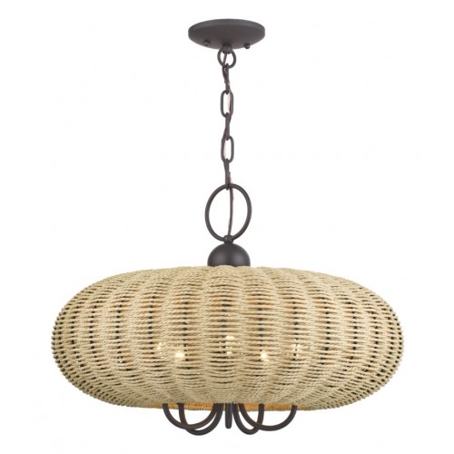 Hand-woven French Beige Paper Rope Shade, 22" Dia x 8" H