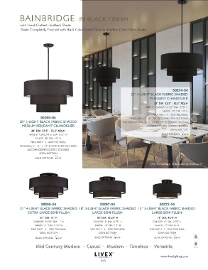 21" 4-LIGHT BLACK FABRIC SHADED 18" 3-LIGHT BLACK FABRIC SHADED 15" 3-LIGHT BLACK FABRIC SHADED