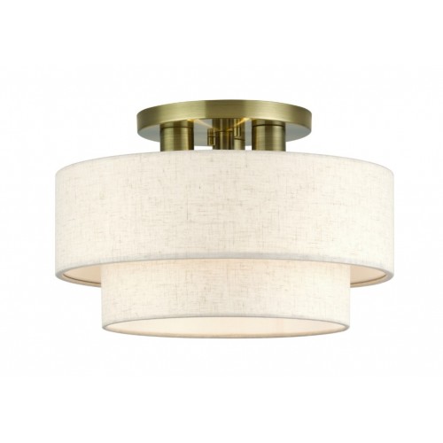 Hand Crafted Oatmeal Color Fabric Shade with White Color Inside, 15" Dia x 6.75" H