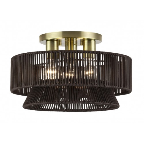 Hand-woven Dark Chocolate Color Polyester Rope Shade, 15" Dia x 6.25" H
