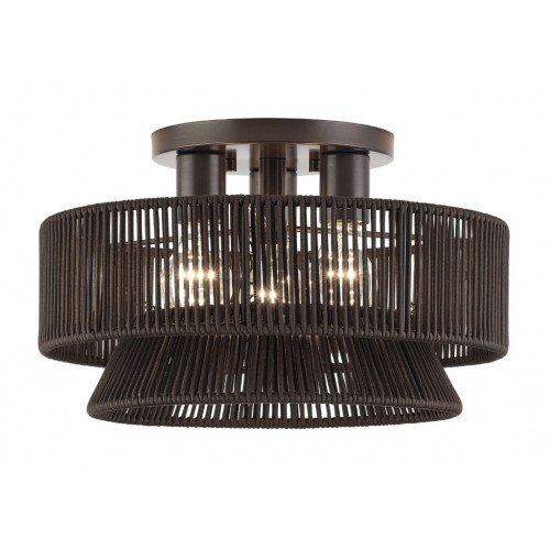 Hand-woven Dark Chocolate Color Polyester Rope Shade, 15" Dia x 6.25" H