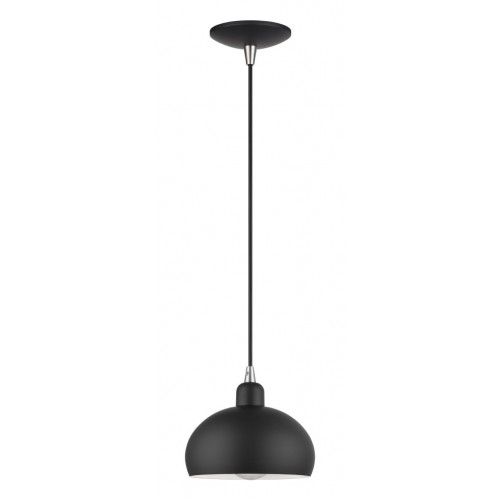 Black Steel Shade with Shiny White Inside, 8" Dia x 4.25" H