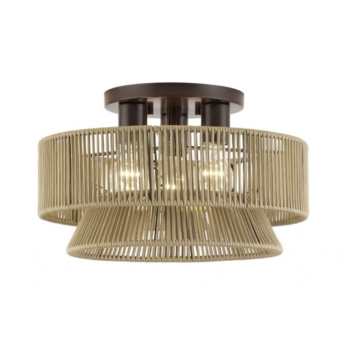 Hand-woven Venetian Gold Color Polyester Rope Shade, 15" Dia x 6.25" H