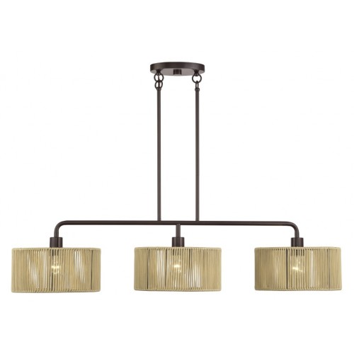 Poised yet fun, the versatile Goldiemesh lighting collection brings elegance, dimensionality and rich, golden radiance to midcentury modern interiors. This boho-inspired design features minimalist metal frames (in contemporary metallic finishes) supporting thin, wide drum shades artfully hand-strung with polyester rope silky-smooth, durable, fade- and fray-resistant synthetic fiber, available in brightening and atmospheric colors.