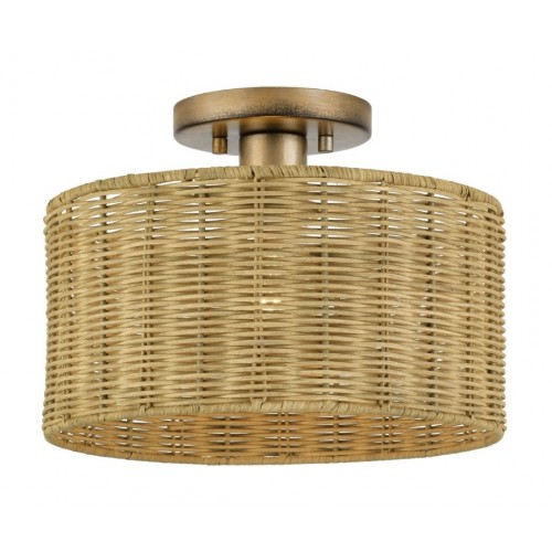 Hand-woven Rustic Walnut Color Rattan Shade, 12" Dia x 6" H