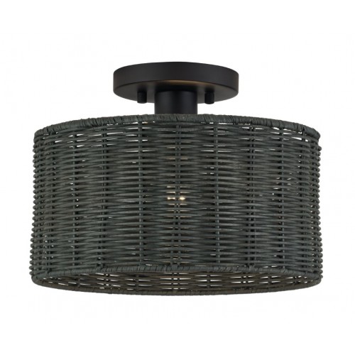 Hand-woven Charred Gray Color Rattan Shade, 12" Dia x 6" H
