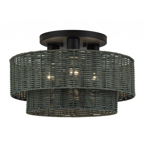 Hand-woven Charred Gray Color Rattan Shade, 15" Dia x 6.25" H