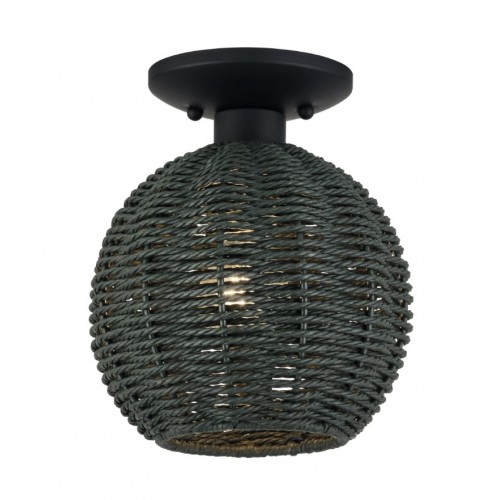 Hand-woven Midnight Black Color Paper Rope Shade, 8" Dia x 7.25" H