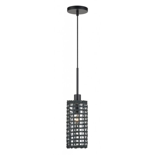 Hand-woven Midnight Black Color Paper Rope Shade On Top of Clear Glass Shade, 4.375" Dia x 11" H