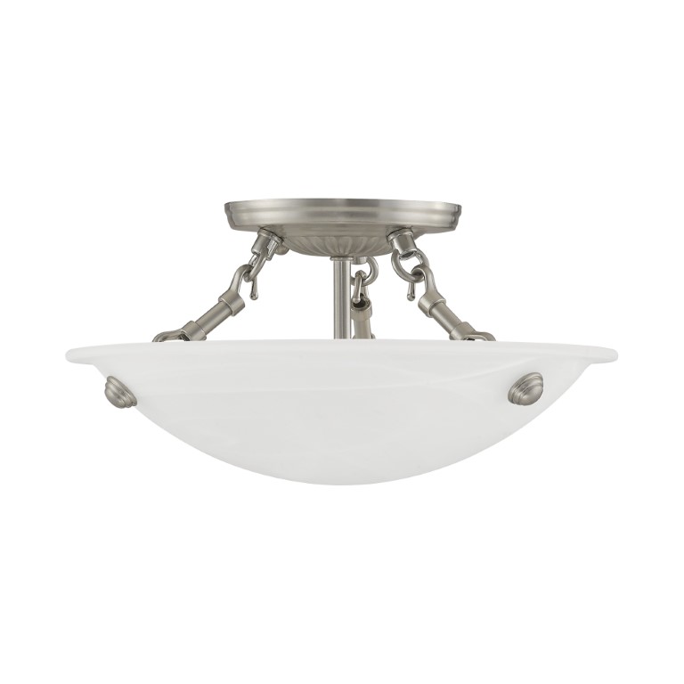 This ceiling mount features contour lines and a bowed profile. With an understated design, this piece is perfect for any space in your home. Featuring a white alabaster glass and brushed nickel finish, this fixture will effortlessly blend with your existing décor.